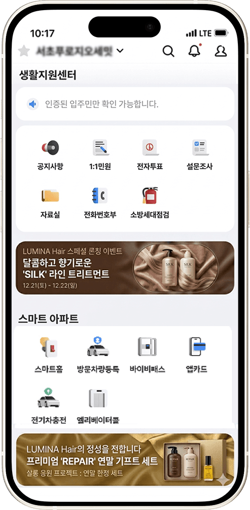거주 인증을 완료한 진성 입주민 데이터만을 타겟팅하여