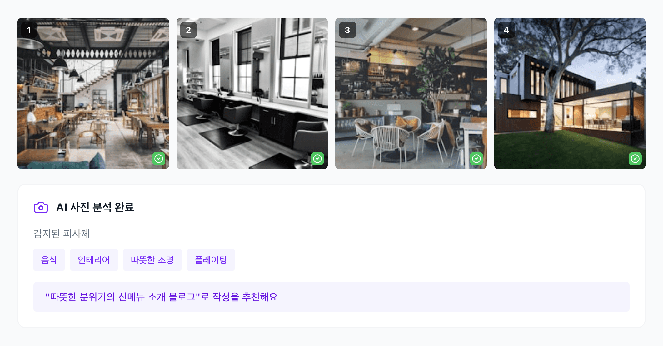 업로드한 사진을 분석해 콘텐츠를 생성해요