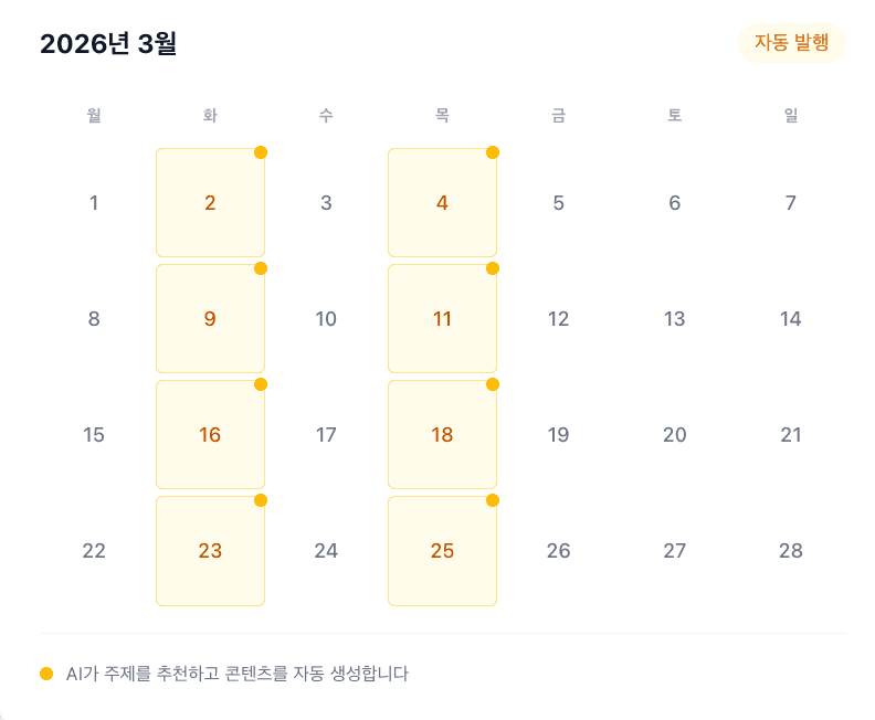 소재 걱정 없이, 발행 요일만 정하면 끝